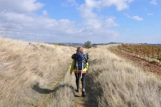 Randonneur en balade sur le chemin du Carroux