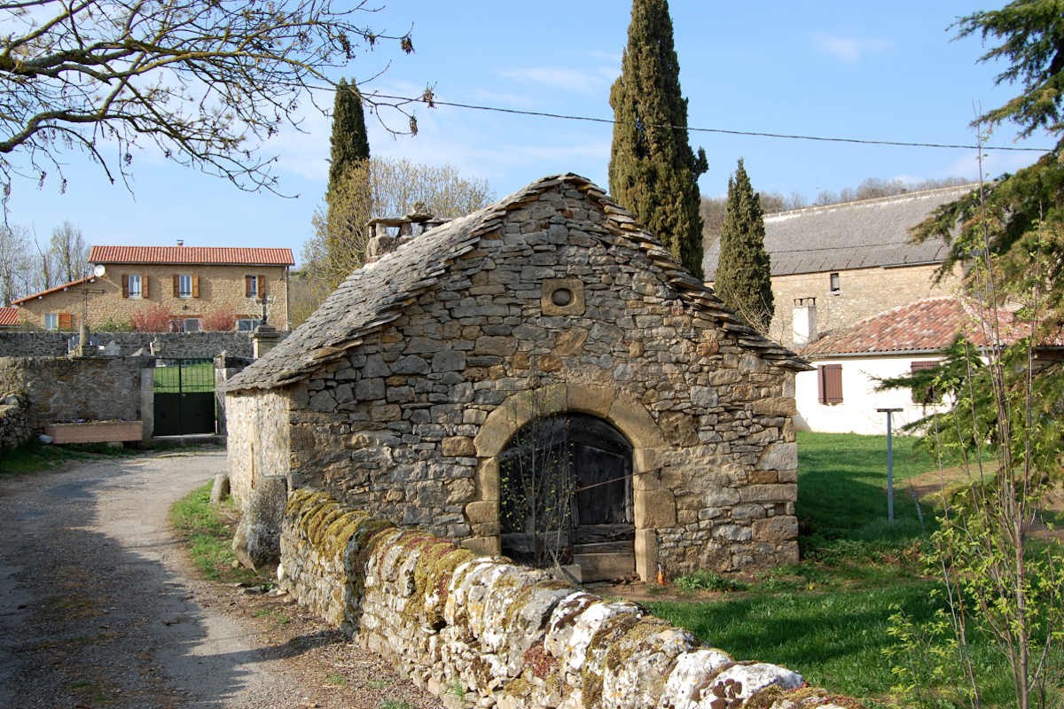 Le village de Tiergues est fait de maisons et de bergeries construites en pierres blondes et couvertes de d'épaisses lauzes.