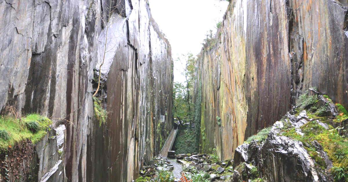Façonnés par des années d'extraction de l'ardoise, les pans de Travassac offrent un paysage vraiment singulier.