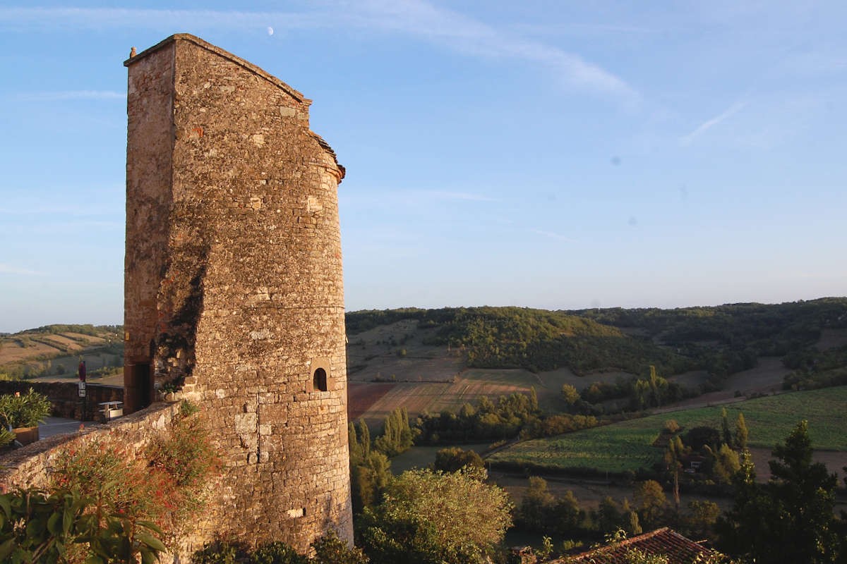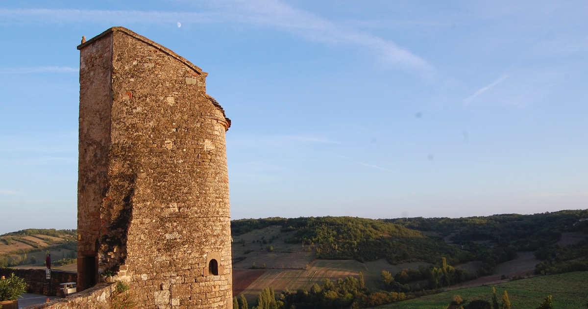 Eclairée par une belle lumière de fin de journée, la tour des remparts, dressée, semble scruter l'horizon.