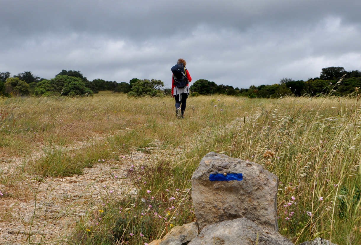 Suivons le très bon balisage de la randonnée à La Caunette qui est, ici, de couleur bleue.
