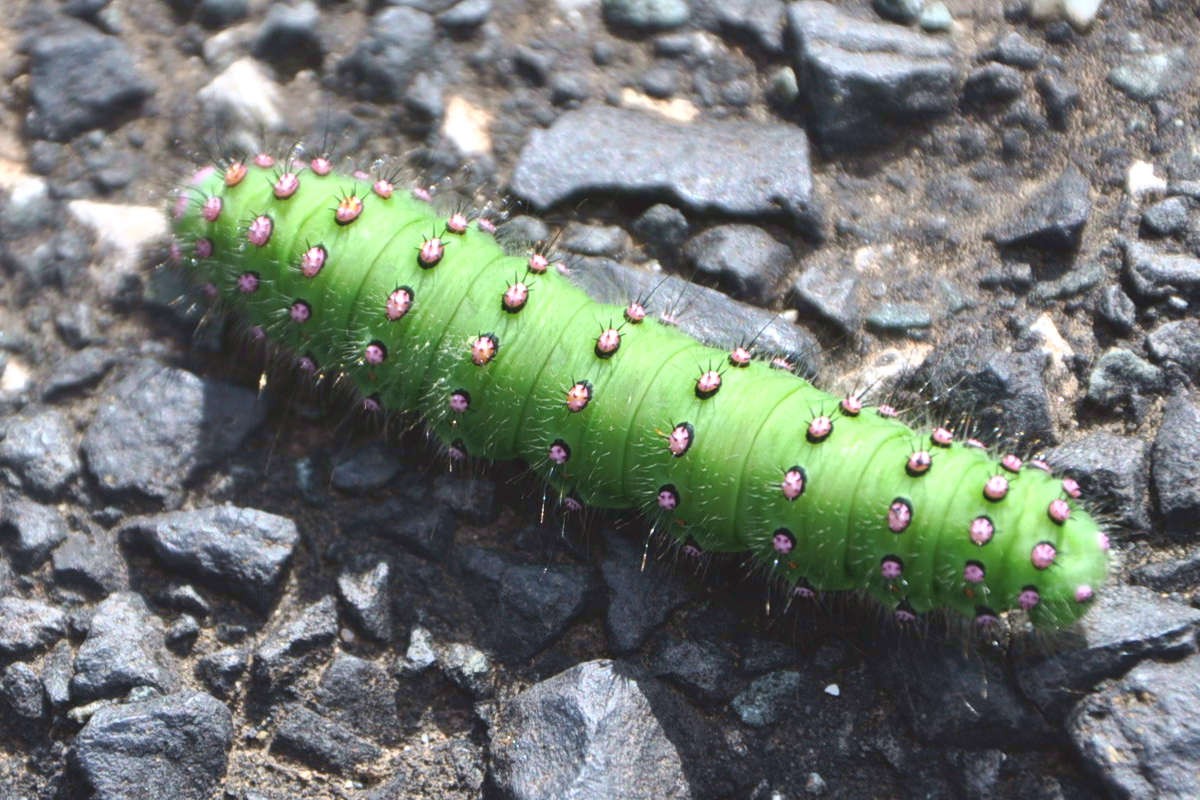Une chenille de petit paon de nuit sur le chemin de La Caunette
