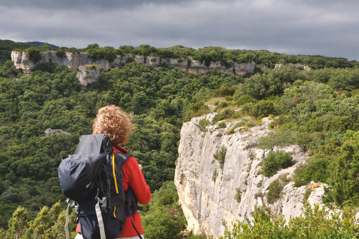 Randonneuse face aux gorges de Trémenal