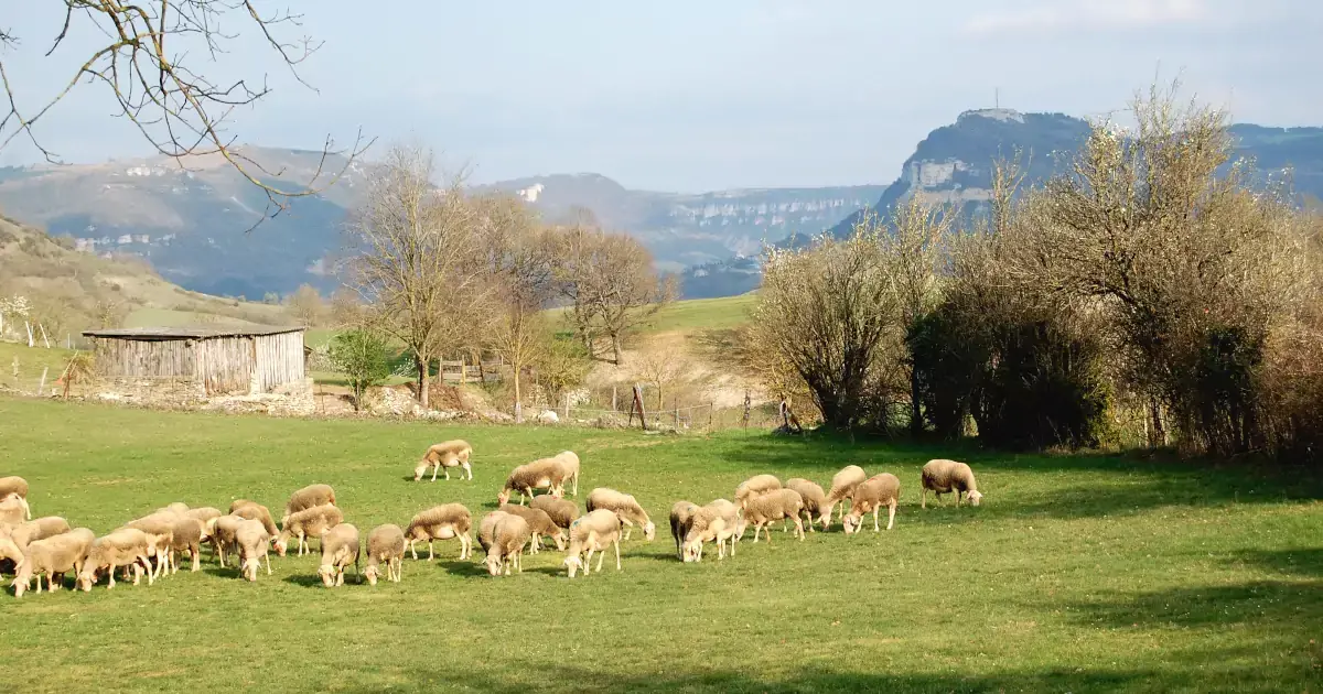 Une élevage de brebis de la production du fromage de Roquefort d'Occitanie