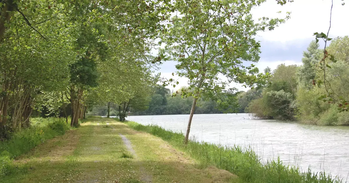 Chemin de halage sur les rives du fleuve Adour en région Aquitaine