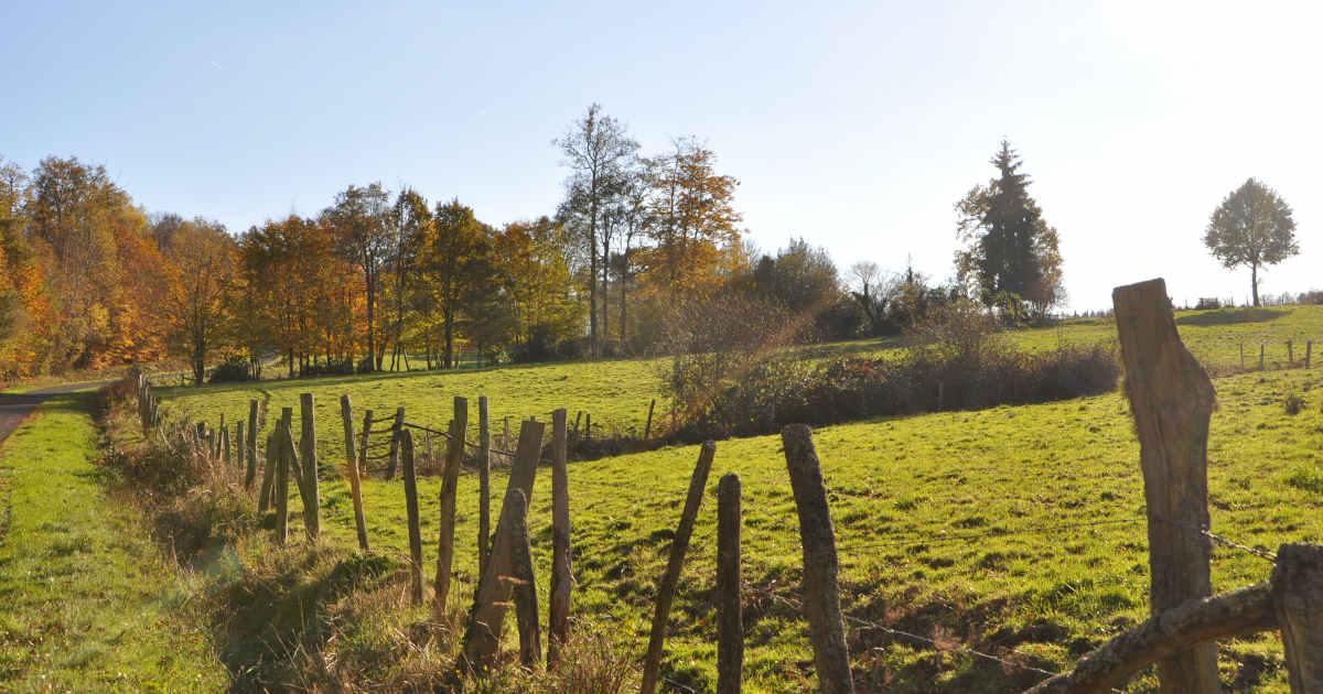 De larges chemins au milieu de belle prairies d'un vert épais vous mène tranquillement jusqu'à votre point de départ vous offrant ici ou là de beaux points de vues peut-être colorés des lueurs de fin de journées.