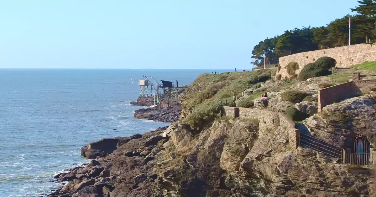 Paysage sur l'océan et les pêcheries du sentier des douaniers à Pornic