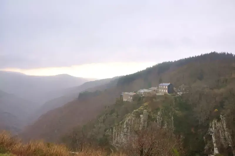 Faites la visite du village de Roquefère où les habitants semblent blottis dans des maisons empilées au fin fond d'étroites vallées tapissées de châtaigniers.