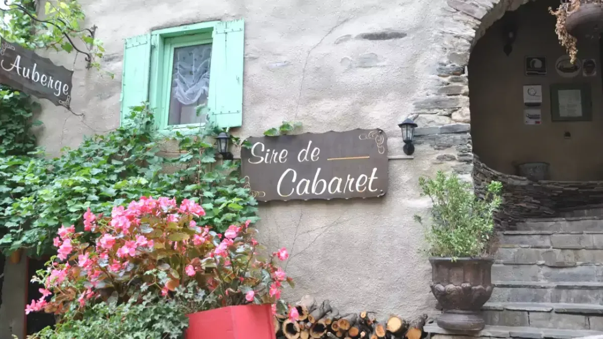 Dans la rue traversant le village de Roquefère, le restaurant Sire de Cabaret est une bonne adresse où manger conseillée aux amateurs de plaisirs simples.