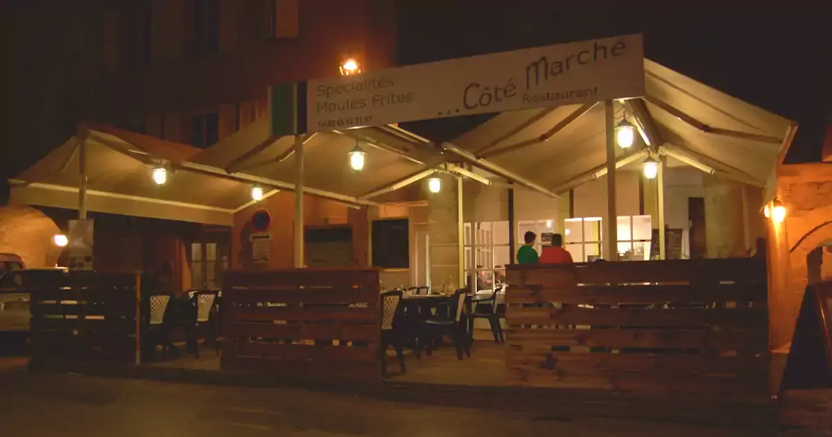 Le petit restaurant en question s'appelle Côté marché et se trouve sur une placette animée à l'ambiance Espagnole, situé au centre de