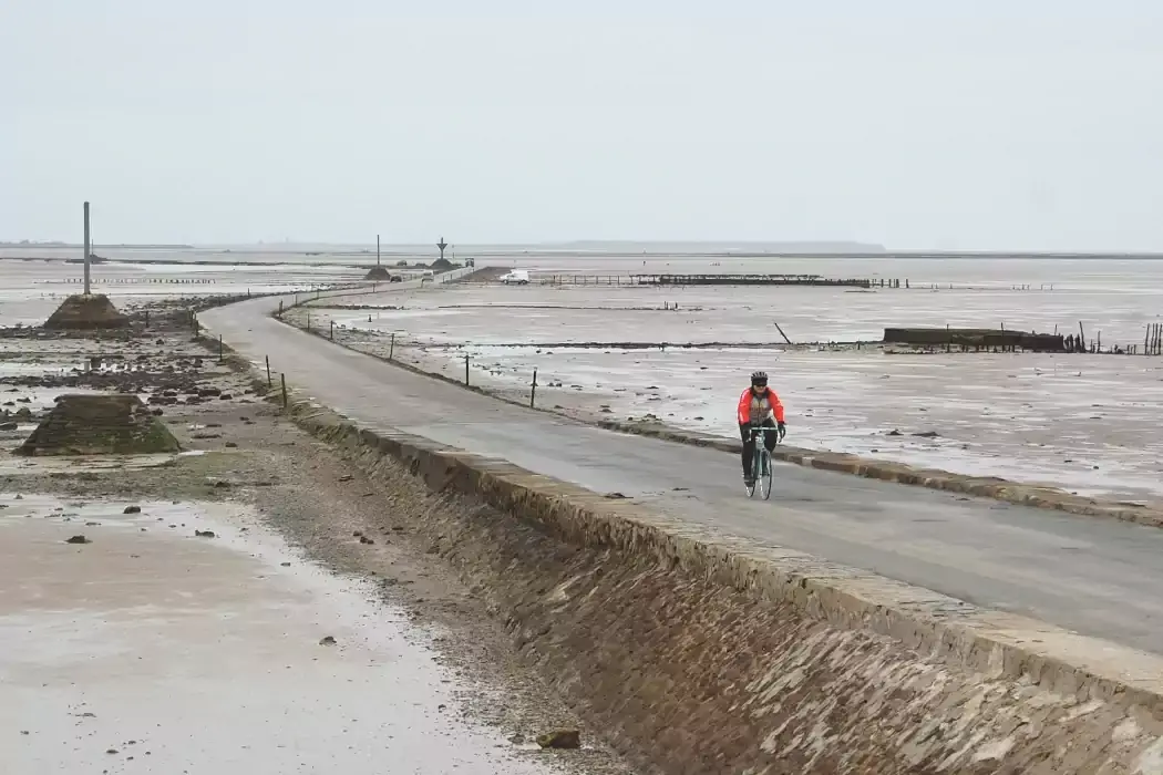 Un cycliste sur le passage du Gois