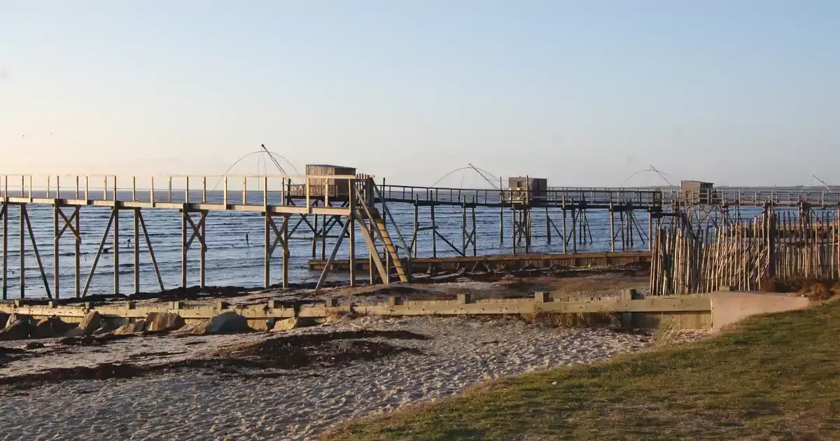 En suivant le littoral, au sud de Pornic, se trouvent les derniers villages de la Loire-Atlantique: Les Moutiers en Retz et Bourgneuf en Retz. Là, une route côtière bordée de plages vous amènera à la découverte des pêcheries au carrelet où le poisson s'attrape dans de larges filets actionnés par des treuils depuis de petites cabanes en bois sur pilotis.