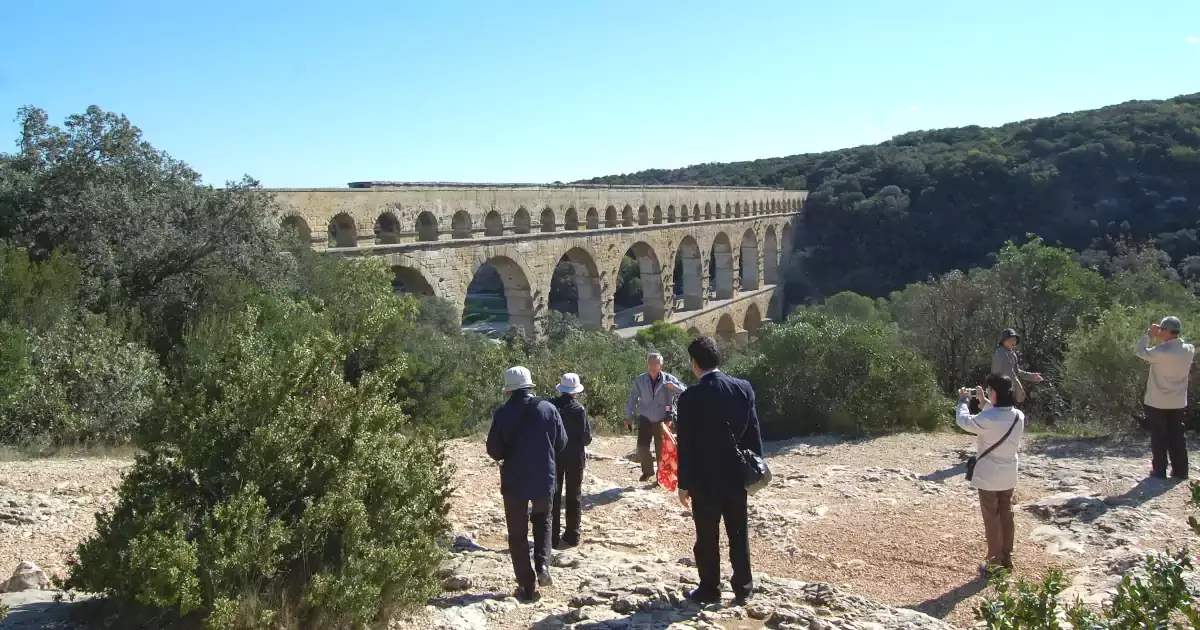 Il fut édifié en l'an 50 de notre ère par les ingénieux romains installés là il y a 2000 ans et qui eurent l'idée de construire un canal-aqueduc long de 50 Km pour ravitailler en eau la ville de Nîmes, carrefour marchand important dans le sud de la France.